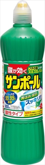 ■【説明】:酸のちからとマイナスイオンの相乗効果で便器(陶器)のがんこな黄ばみ・尿石を化学分解して落とすトイレ用強力洗浄剤です。便器(陶器)のふちのウラまで液がかけやすいスミズミノズルです。かけた場所もよくわかり、たれ落ちにくいグリーンの液です。清潔感のあるさわやかな香りでニオイもスッキリ。目安の使用量では浄化槽の機能(微生物)への影響はありません。酸が効く。
