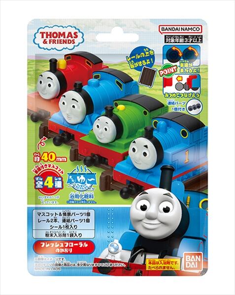■【説明】:「きかんしゃトーマス」のフィギュアつき入浴剤。全4種。フレッシュフローラルの香り。