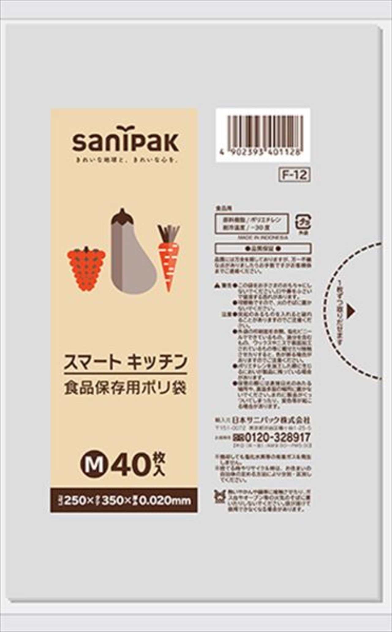 【まとめ買い】F12 スマートキッチン 食品保存袋 M 透明 40枚 【 日本サニパック 】 【 ポリ袋・レジ袋 】【HRM-22048040-1】×30点セット