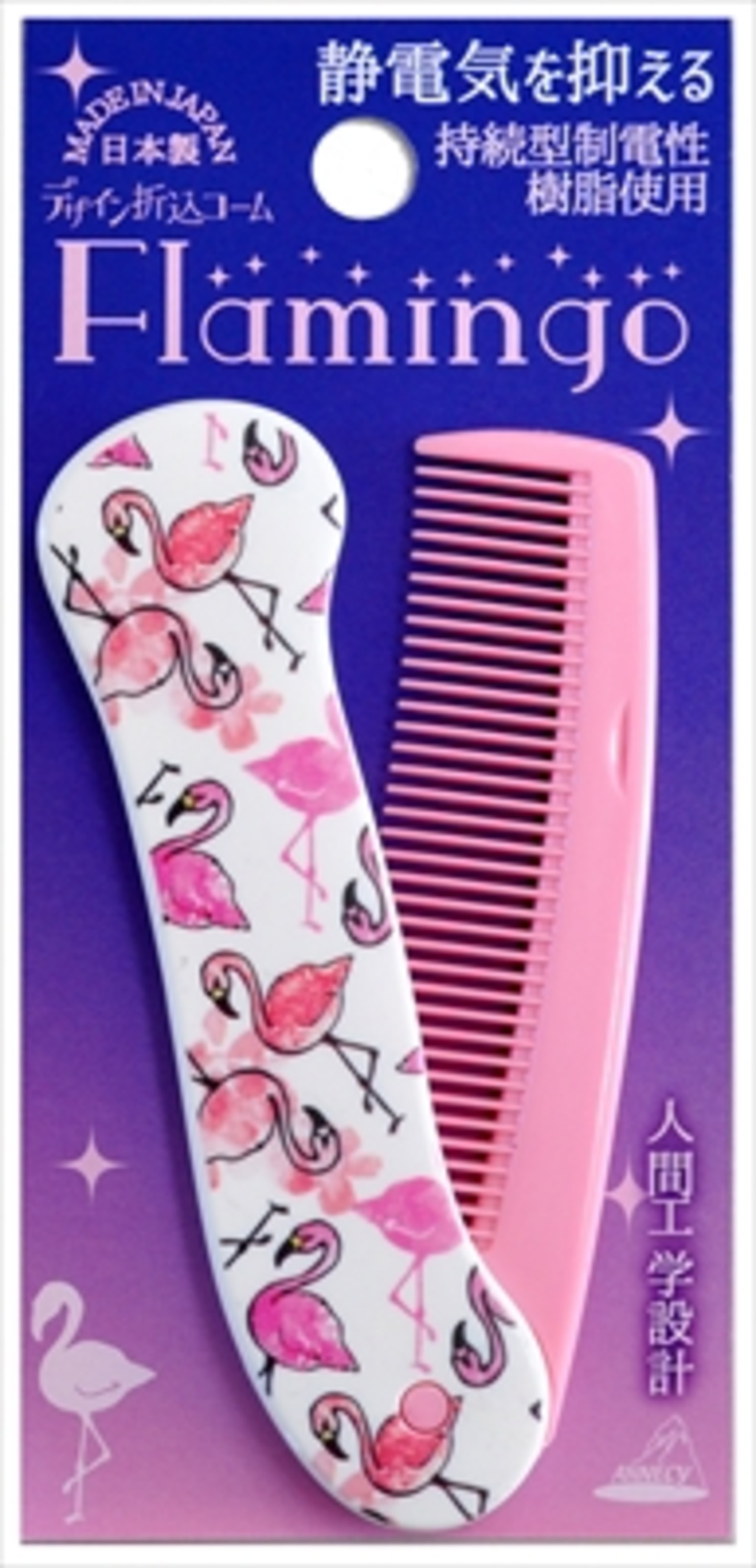 ■【説明】:フラミンゴ柄が可愛い折込タイプのコーム。静電気を抑える素材を使用しています。