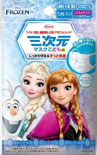 ■【説明】:しっかり守る&ずっと快適。アナたちの絵柄のこども用マスク