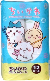 ■【説明】:Twitter発の人気キャラクターちいかわとその仲間たちをデザインしたトイレットペーパーの第2弾。子どもから大人までトイレが楽しくなるトイレットペーパー。