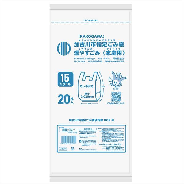 【まとめ買い】ゴミ袋 G50K 加古川市燃やすごみ とって付き15L20枚 【日本サニパック】【HRM-22521464-1】×30点セット