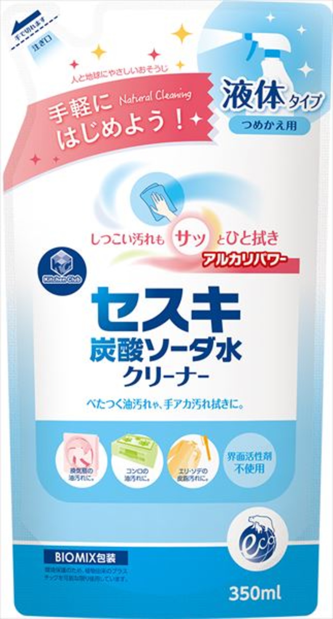 ■【説明】:べたつく油汚れ、手あか汚れ拭きに。セスキ炭酸ソーダと水だけで作ったクリーナーです。 界面活性剤を使っていません。無香料・無着色
