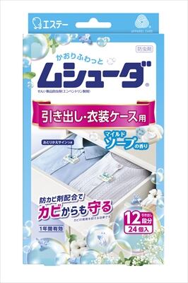 【まとめ買い】ムシューダ 1年間有効 引き出し・衣装ケース用 24個入 マイルドソープの香り 【防虫剤】【HRM-16100653-3】×5点セット