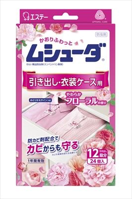 【まとめ買い】ムシューダ 1年間有効 引き出し・衣装ケース用 24個入 やわらかフローラルの香り 【防虫剤】【HRM-16100652-3】×5点セット