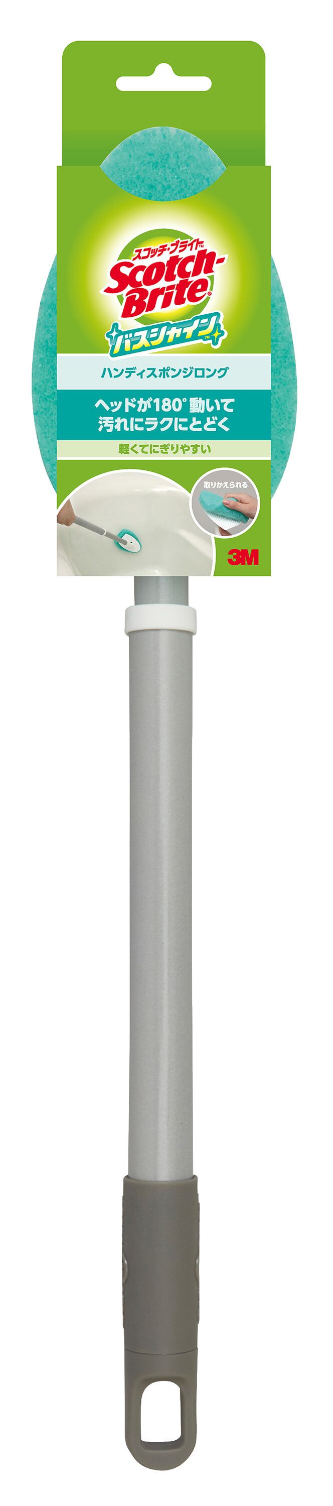 ■【説明】:ヘッドが180度、動いて汚れにラクにとどく!不織布スポンジが落ちにくい湯あか、石けんカスもサッと落とす。使用後の水切れがよく衛生的。スポンジは100%再生PETを使用し、スポンジの固定方法を変更してプラスチックパーツを削減。スポンジは取り替え式で経済的