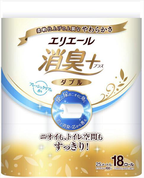 【まとめ買い】エリエール 消臭+トイレットティシュー フレッシュクリアの香り ダブル 18ロール【HRM-22517239-1】×4点セット