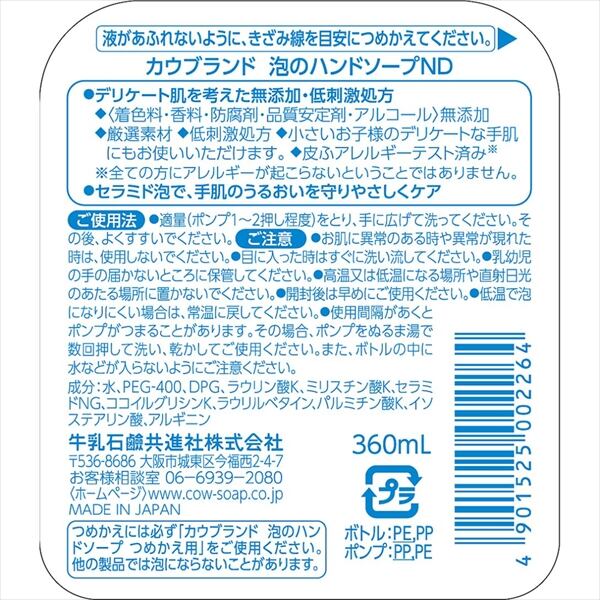 ■【商品名】: 【まとめ買い】カウブランド無添加泡のハンドソープ 360ML×12点セット