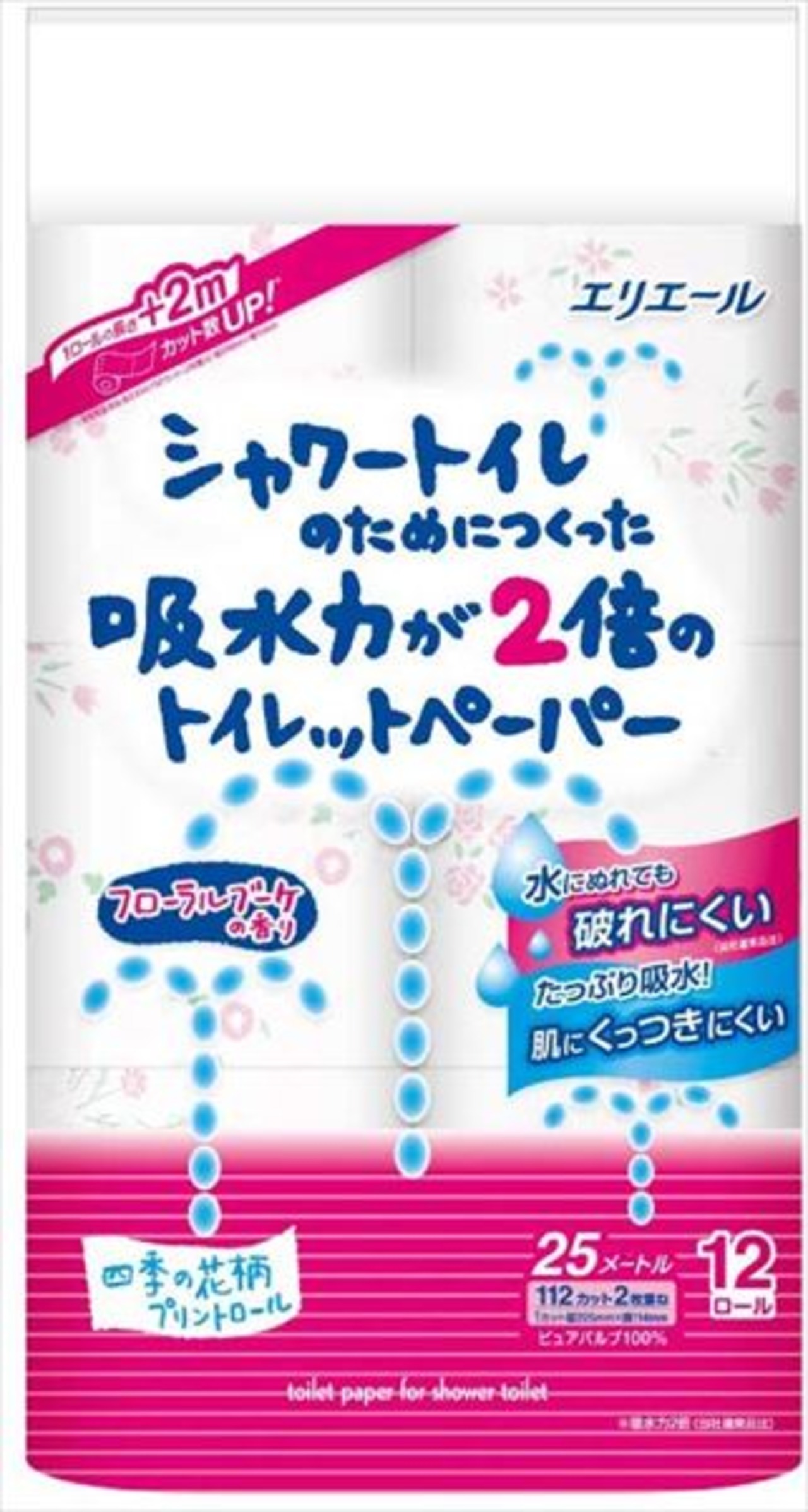 【まとめ買い】シャワートイレのためにつくった吸水力が2倍のトイレットペーパーフラワープリント香水付き12Rダブル【HRM-22521488-1】×6点セット