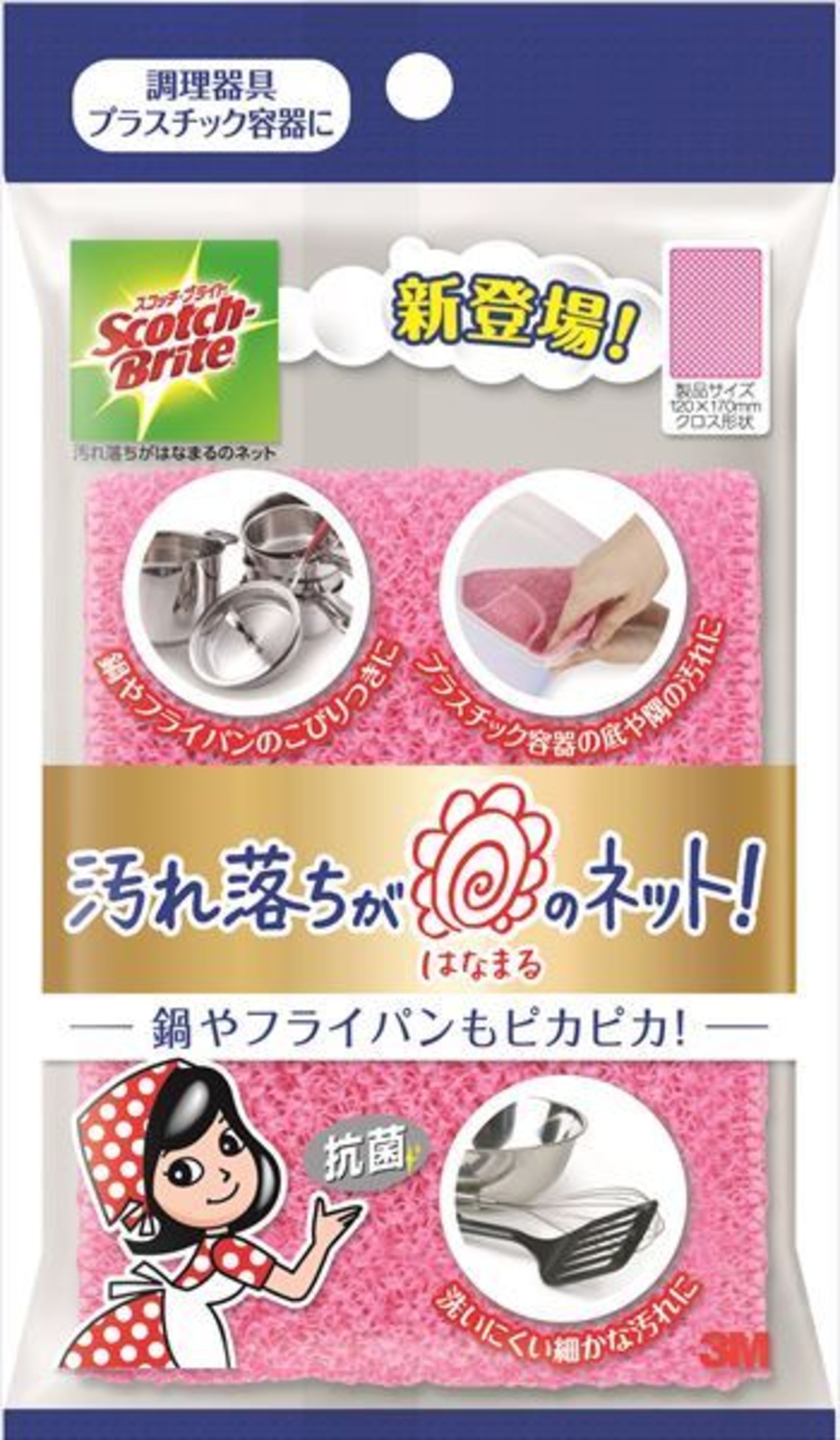 ■【説明】:クロス形状でしっかり力が伝わり、隅々までしっかり洗える。繊維素材、編み方の最適コンビネーション採用で、油よごれ、こびりつきをしっかり落とせる。