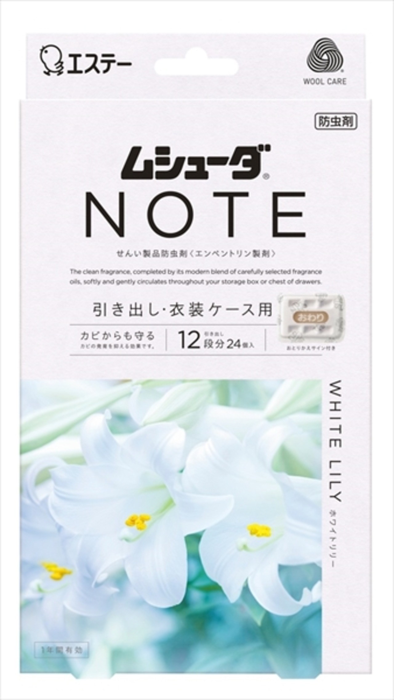 【まとめ買い】ムシューダ NOTE 1年間有効 引き出し・衣装ケース用 ホワイトリリー 【エステー】 【防虫剤】【HRM-21405630-3】×5点セット