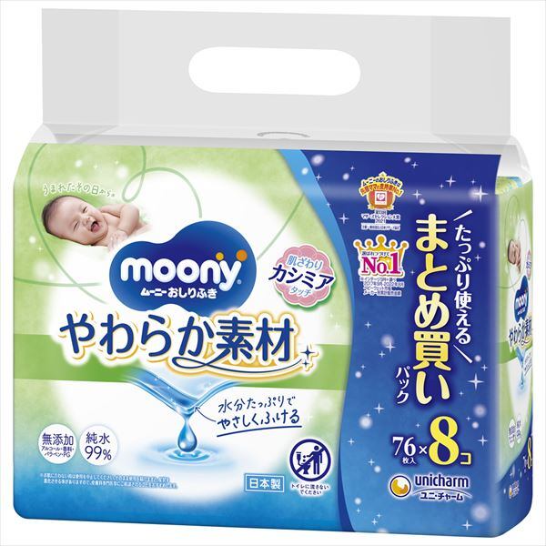【まとめ買い】ムーニーおしりふきやわらか素材詰替76枚×8 【 ユニ・チャーム 】 【 おしりふき 】【HRM-18155099-1】×4点セット