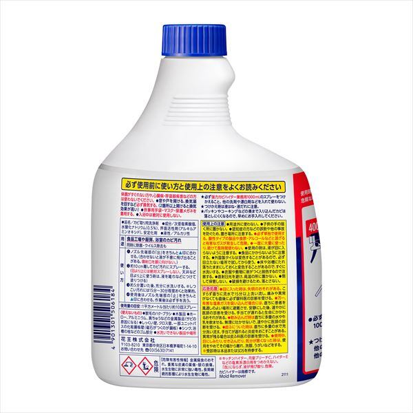 ■【説明】:厨房・浴室の落としにくいカビに! 泡がとどまって強力に効く!密着成分配合。厨房の壁面、浴室の壁、ゴムパッキン、シャワーホースなどの落としにくかった垂直面のカビも、泡が密着しとどまって効くことでしっかり退治します。同時に除菌*1・消臭・ウィルス除去*2もできます。*1すべての菌を除去するわけではありません。*2すべてのウイルスを除去するわけではありません。