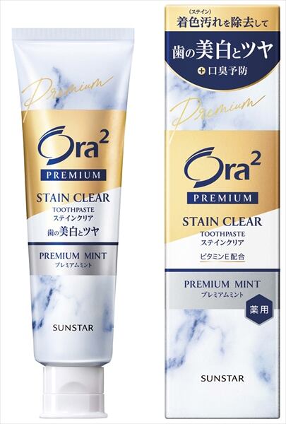 ■【説明】:シャイニーホワイト成分※(清掃助剤)が、清掃剤とともにステイン(着色汚れ)を落として歯面を丁寧に磨き、歯の「美白とツヤ」を叶えます。爽やかさあふれる上質な「プレミアムミント」フレーバー。