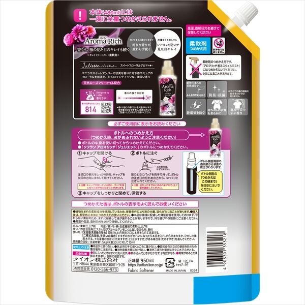 【まとめ買い】ソフラン アロマリッチ ジュリエット つめかえ用特大 950ml 【ライオン】 【衣料用洗剤】【HRM-20018217-1】×6点セット