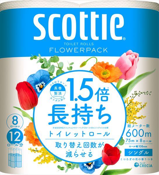 【まとめ買い】スコッティフラワーパック1.5倍巻き8ロールシングル 【 日本製紙クレシア 】【HRM-22522190-1】×8点セット