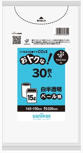【まとめ買い】CU19 オトクナ 15L 白半透明 30枚 【 日本サニパック 】 【 ポリ袋・レジ袋 】【HRM-20760184-1】×20点セット