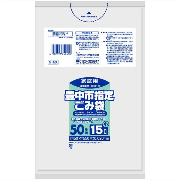 【まとめ買い】G−6X豊中市指定袋 家庭用15L小50枚 【 日本サニパック 】 【 ゴミ袋・ポリ袋 】【HRM-6424364-1】×12点セット