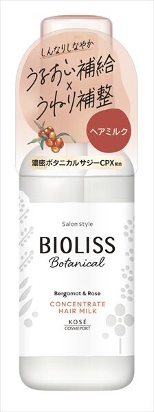 ■【説明】:1本でトリートメント&スタイルメイクを叶える、濃密ボタニカルサジー配合のヘアミルク。濃密うるおい効果でうねり・パサつきをおさえて毛先までまとまる髪へ。みずみずしく可憐なベルガモット&ローズの香り。