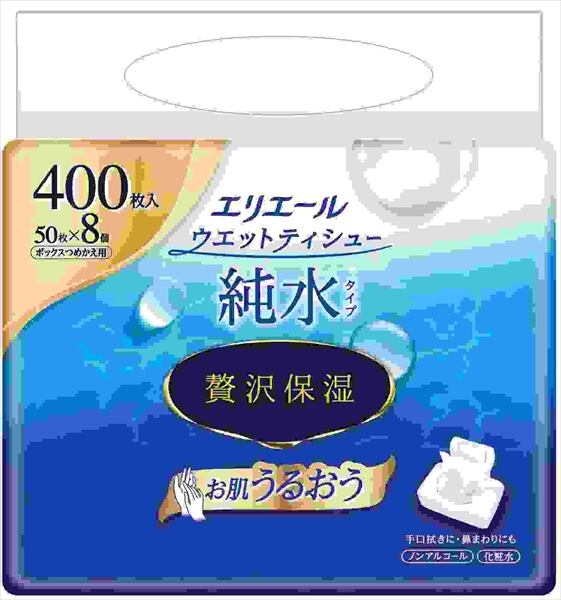 【まとめ買い】エリエールウェットティシュー 純水タイプ ぜい沢保湿 詰替え50枚×8パック 【大王製紙】【HRM-20047766-1】×4点セット