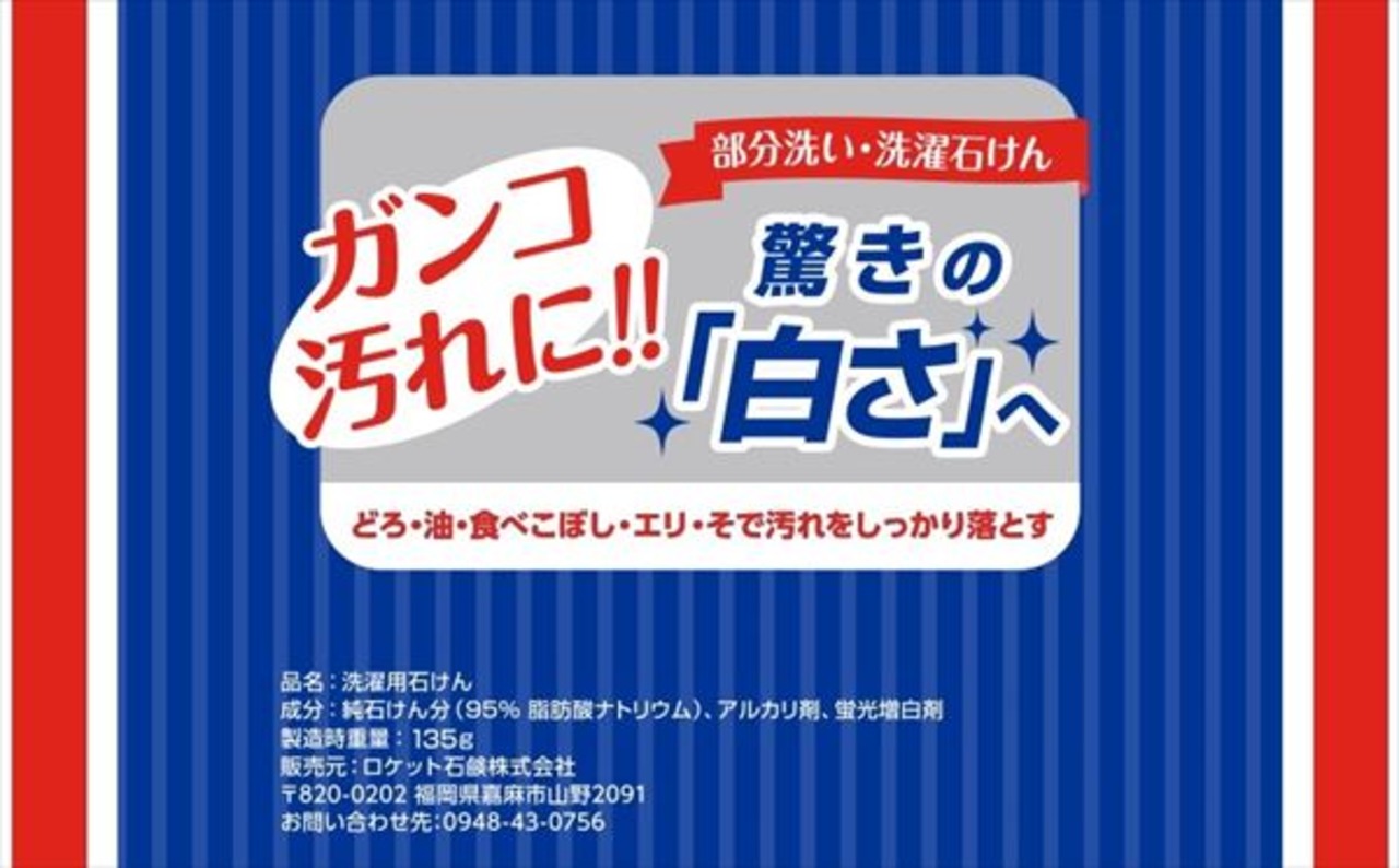 ■【説明】:ドロ汚れや食べこぼし、エリ・ソデの汚れをしっかりと落とす洗濯石鹸。