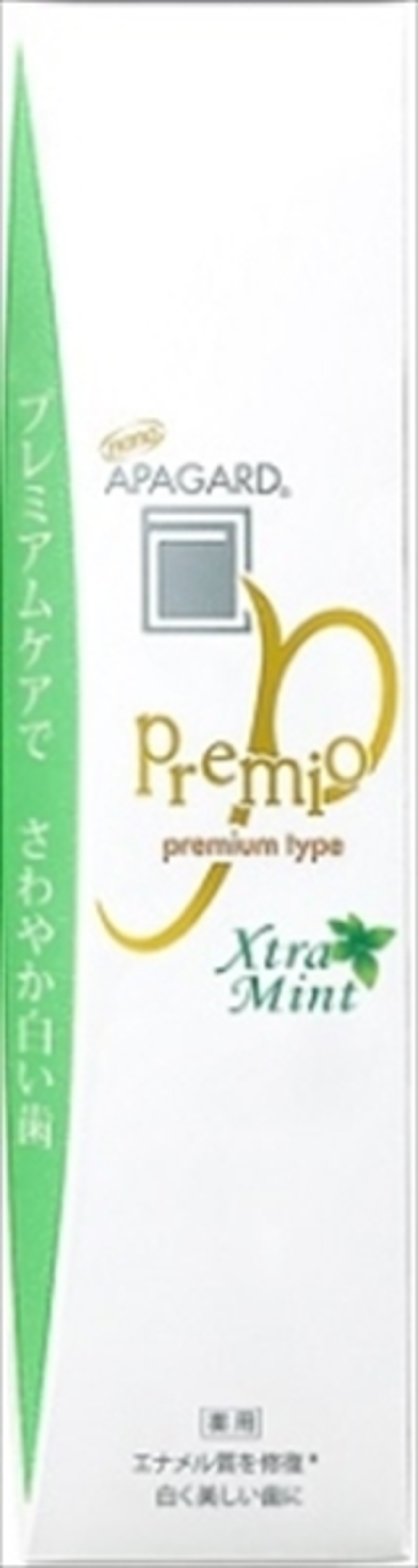 ■【説明】:美白歯みがきのアパガードがリニューアル。独自成分「薬用ハイドロキシアパタイト」が、エナメル質を整えて虫歯を。プレミオエクストラミントは、「薬用ハイドロキシアパタイト」を高配合(Mプラス・スモーキン・セレナ比)し、香料をエクストラミントタイプにしたプレミアムタイプ。さわやかな白い歯に。持ち歩きしやすいサイズで、外出先でも歯の美白ケア。お試しにも満足な量。