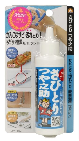 ■【説明】:ガンコなサビをキズもつけずにスッキリ落とします。つけ置きの必要がなく拭くあげればワックス効果も。さび止め効果も発揮します。