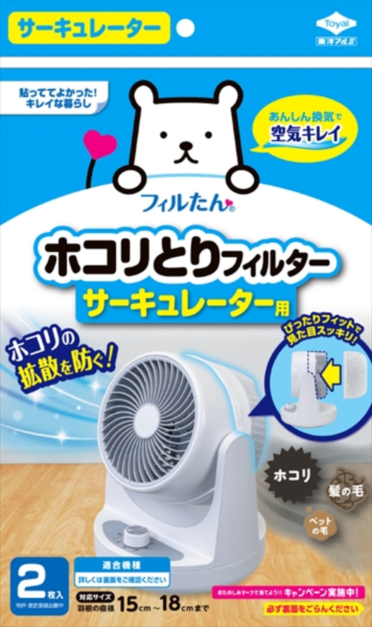 ■【説明】:この製品は、サーキュレーターの羽根やカバーに溜まるゴミやホコリを防ぎ、機器の汚れを軽減するためのものです。●分解して掃除をするのが面倒なサーキュレーターの内部に入り込むホコリや髪の毛、ペットの毛をキャッチします。●サーキュレーターを通して室内にホコリが舞い散るのを防ぎ、きれいな空気を循環させることができます。●伸縮性のあるフィルターなので、様々なサイズの機器にすき間なくフィットします。