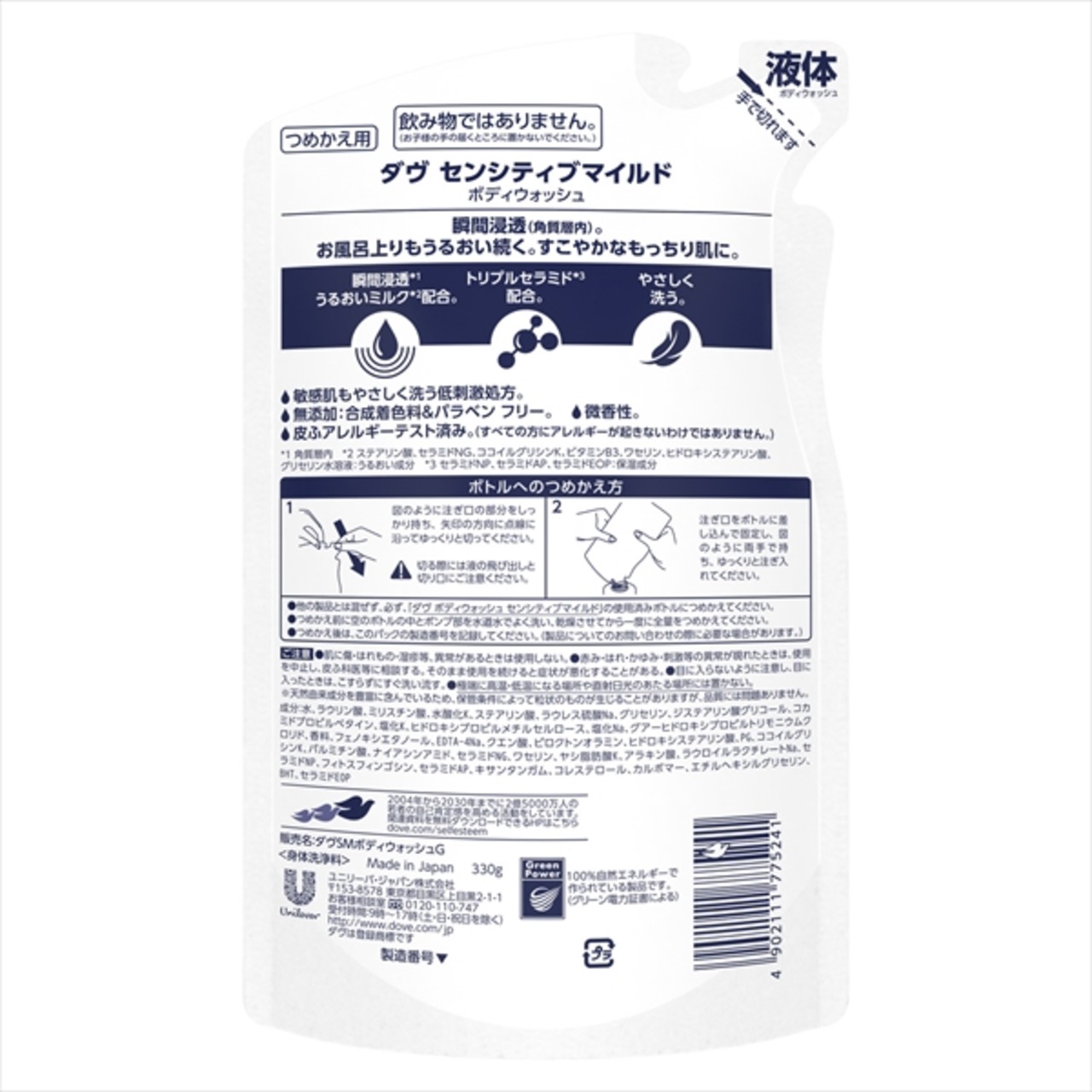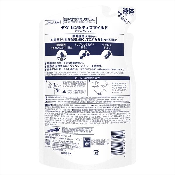 【まとめ買い】ダヴ ボディウォッシュ センシティブマイルド つめかえ用 330G 【ユニリーバ】 【ボディソープ】【HRM-20018177-1】×18点セット
