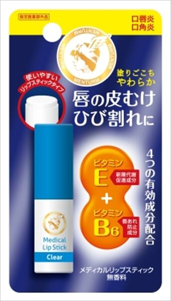 ■【説明】:ひどい唇の荒れを即効ケア。修復×保湿のメディカルリップスティック。塗りごこちやわらか。4つの有効成分配合。(アラントイン、ビタミンB6、ビタミンE、グリチルリチン酸)口唇炎、口角炎で痛みを伴う際でも、やわらかな感触で刺激を軽減しながらケアできます。メントール無香料タイプ