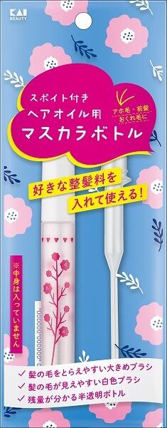 ■【説明】:マスカラ形状のブラシ付きのボトル。自分の好きなヘアオイルやウォーター系のワックスを入れて持ち歩けば、どこでも「アホ毛」のケアができる。