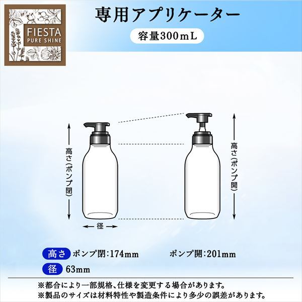 ■【説明】:「フィエスタピュアシャイン」リンスインシャンプー専用の空容器。部屋置きにおすすめの容量300mLタイプ。