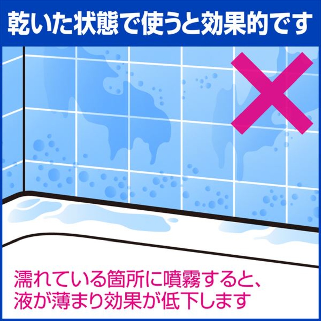 ■【説明】:厨房・浴室の落としにくいカビに! 泡がとどまって強力に効く!密着成分配合。厨房の壁面、浴室の壁、ゴムパッキン、シャワーホースなどの落としにくかった垂直面のカビも、泡が密着しとどまって効くことでしっかり退治します。同時に除菌*1・消臭・ウィルス除去*2もできます。*1すべての菌を除去するわけではありません。*2すべてのウイルスを除去するわけではありません。