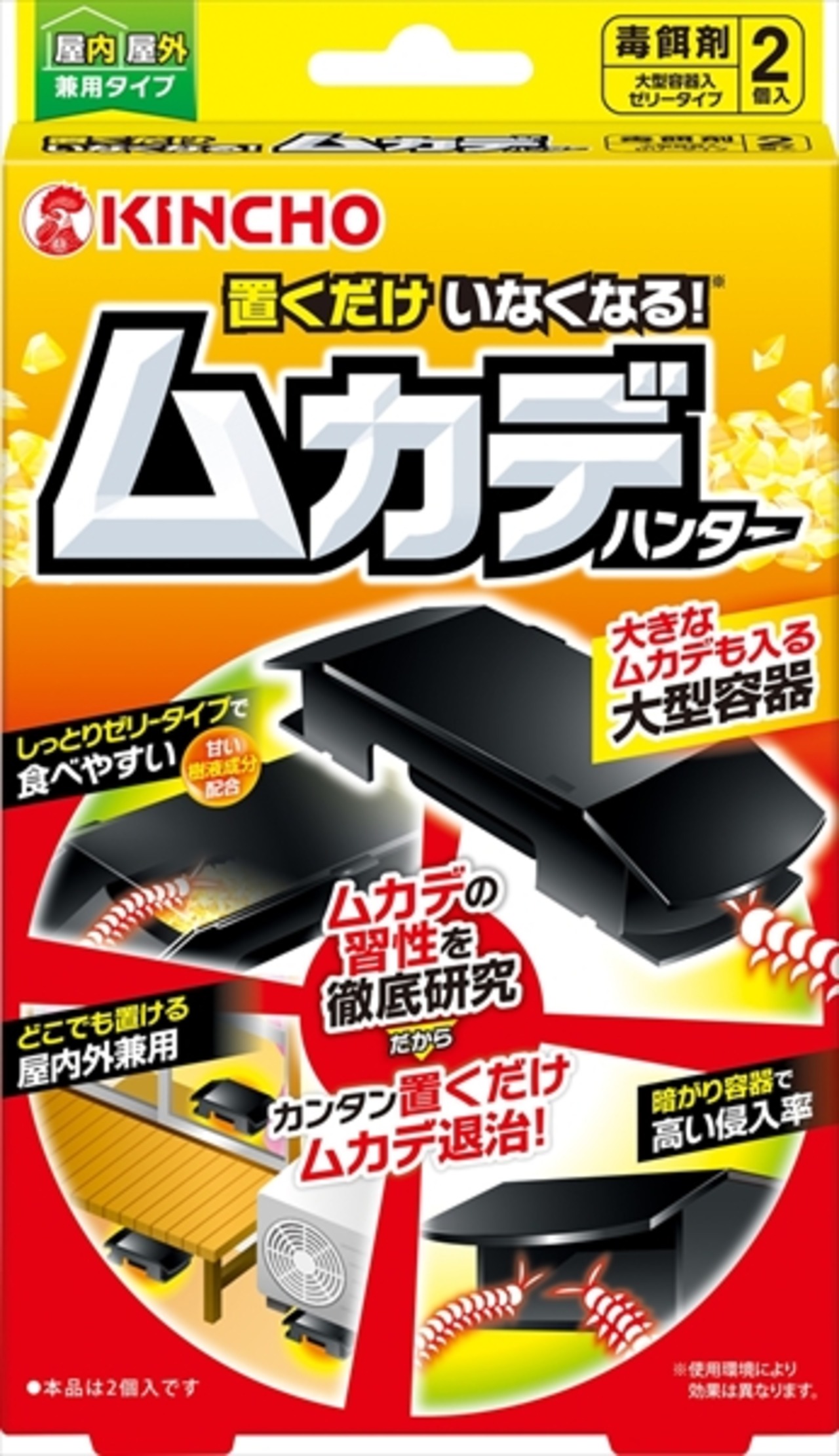 ■【説明】:置くだけ簡単のムカデ用ベイト剤。ムカデの習性を徹底研究した大型容器としっとりゼリー処方でムカデがいなくなります。
