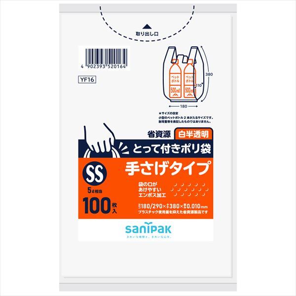 ■【商品名】: 【まとめ買い】YF16 とって付きポリ袋 SSサイズ白 100枚×20点セット