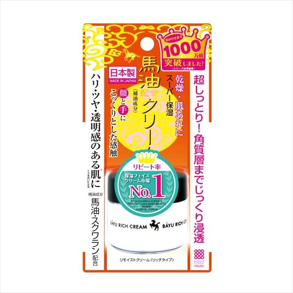 ■【説明】:保湿フェイスクリーム市場 リピート率 No.1!シリーズ累計出荷数1000万個突破!根強いファンを獲得しているリモイストクリーム<リッチタイプ>は馬油・スクワラン配合でお肌をしっとりうるおします。角質層までじっくり浸透し、ハリ・ツヤ・透明感のある肌へ。顔だけでなく、全身の乾燥しやすい部分にもお使いいただけます。