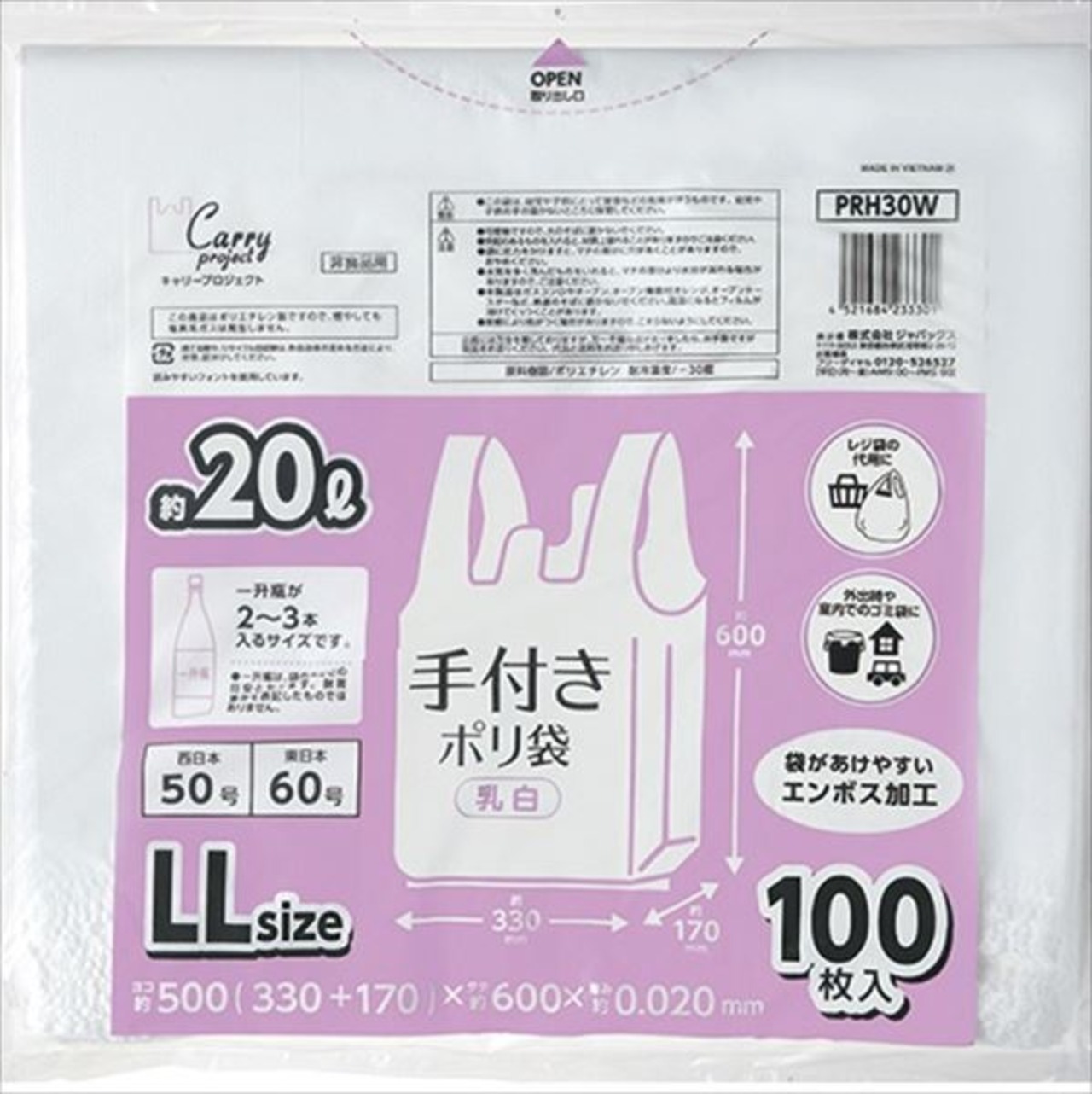 【まとめ買い】手付きポリ袋乳白LL100枚 PRH30W 【 ジャパックス 】 【 ポリ袋・レジ袋 】【HRM-22517244-1】×10点セット