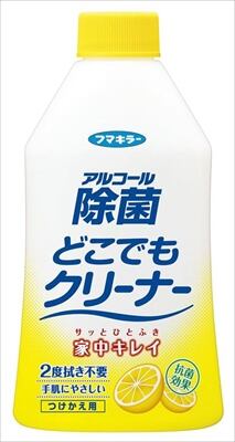■【説明】:●洗剤成分を使用していないのでベタつきが残りません。お子様やペットが触れる場所に最適です。●天然発酵アルコールとアルカリ電解水が様々な汚れをスッキリ落とし、細菌・ウイルスを除去します。さらに、グレープフルーツ種子エキスの抗菌パワーが菌の繁殖を抑えて清潔な状態を保ちます。●キッチンの油汚れや食べこぼし、ドアノブの手あか、リビングのヤニ汚れなど家中の汚れを落とします。