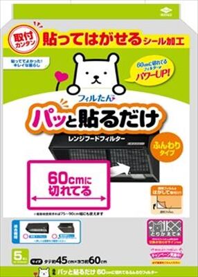 ■【説明】:パッと貼るだけ60cmに切れてるふんわりフィルター。磁石不要、取り付け簡単。ふんわりフィルターが油汚れをしっかりキャッチ。