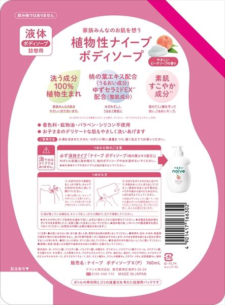 ■【商品名】: 【まとめ買い】ナイーブ ボディソープ(桃の葉エキス)詰替用2回×10点セット