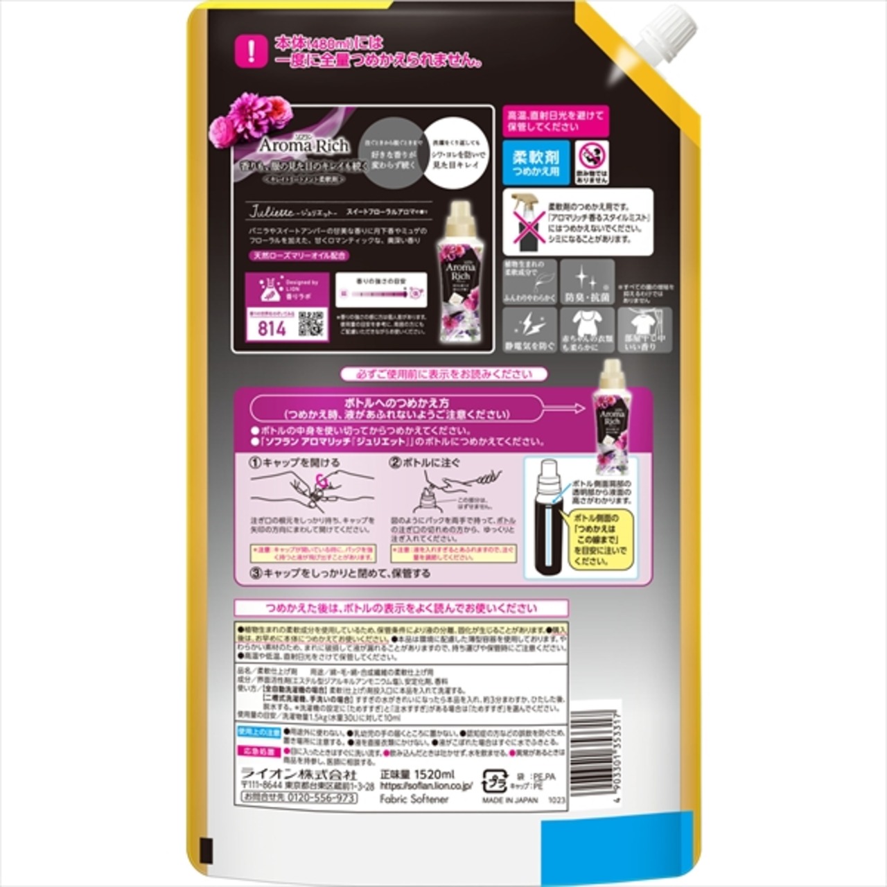 【まとめ買い】ソフラン アロマリッチ ジュリエット つめかえ用ウルトラジャンボ 1520ml 【 ライオン 】【HRM-21462478-1】×6点セット