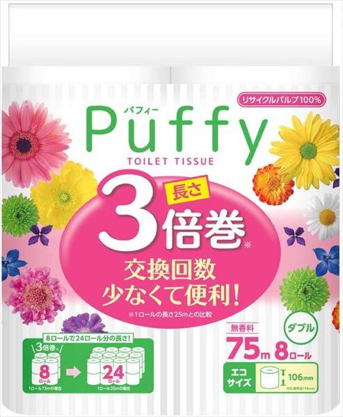 【まとめ買い】パフィー3倍巻 8R(ダブル) 【 大王製紙 】 【 トイレットペーパー 】【HRM-22522335-1】×8点セット
