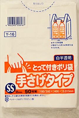 ■【商品名】: 【まとめ買い】Y−16 とって付きポリ袋 SS50P 白半透明×30点セット
