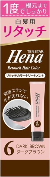 ■【説明】:簡単リタッチ、部分白髪用カラートリートメント。直塗りブラシで、手を汚さずに、気になる分け目・生え際の白髪をリタッチできます。放置時間5分。オリジナルヘナ葉エキス配合。特許技術「ミクロカラーコート処方」採用。無香料