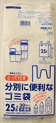 ■【説明】:25L半透明のとって付きゴミ袋。