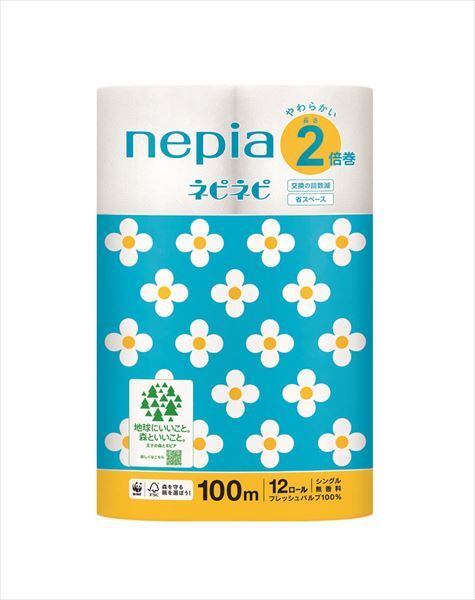 ■【説明】:いつものネピネピで「長さ2倍」のトイレットロールが新発売!2倍巻だから、交換回数1/2、省スペースに。ネピネピトイレットロール2倍巻12ロールシングルは、高密度ソフトエンボスで丈夫でやわらかく、吸水性にも優れているので温水洗浄後の拭き取りにも最適です。取っ手は持ちやすい1つ穴、無香料、フレッシュパルプ100%製品です。