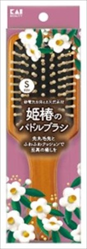 ■【説明】:静電気が起こりにくい天然素材(姫椿)を使用したパドルブラシからSサイズが登場。地肌に優しい先丸ピンやクッション性はそのままで、より小回りが利き持ち運びが便利なサイズです。