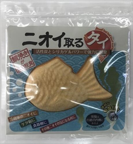 ■【説明】:鯛焼きそっくりな形をした除湿脱臭剤です。4大悪臭と呼ばれるアンモニア・トリメチルアミン・硫化水素・メチルメルカプタンをシリカゲルと活性炭でほぼ完全に脱臭します。冷蔵庫内や食器棚での脱臭剤として、下駄箱やロッカーなどのニオイの気になる場所の除湿脱臭剤としてご使用になれます。食品に触れても安心な素材(厚労省食品添加物基準370号)をクリア。取り付けに便利な吸盤と取り付けひも付き。