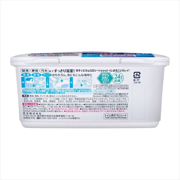 ■【説明】:手強い尿臭・便臭もすっきり!これ1枚で便器から床・壁まで汚れをすっきり落とし、除菌もできるおそうじシートです。洗浄液たっぷりでふきやすく、厚手で丈夫なシートなので、汚れが手につきにくく、より広い面積を安心しておそうじできます。尿臭ブロッカーEX配合。フレッシュハーブの香り。使用後はそのままトイレに流せます。ポータブルトイレ(木製や、柔らかいタイプの便座を除く)や温水洗浄便座にも使えます。